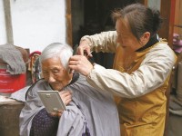 為老人們免費理發(fā)這件事,張?zhí)煺湟呀?jīng)堅持了32年,從母親手里接過“愛心剪”后,就再沒放下過。