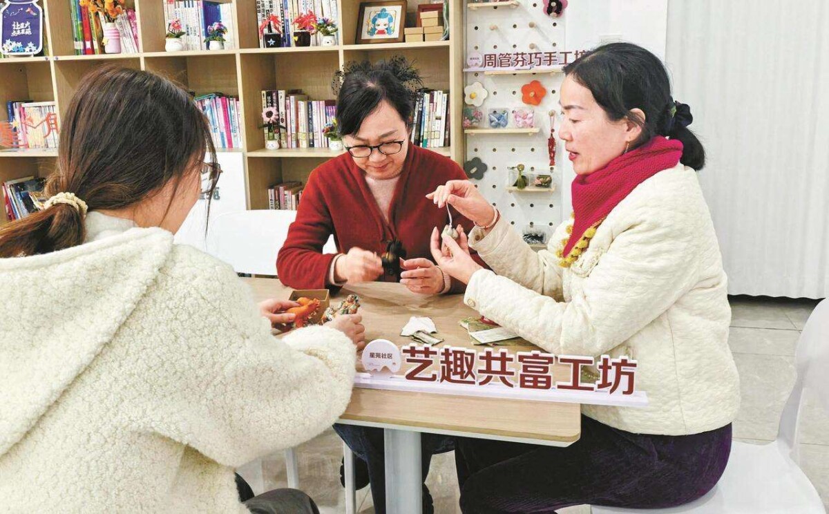 近日,鄞州區(qū)潘火街道星苑社區(qū)藝趣共富工坊內(nèi)暖意融融,手工香包達人周靜芬正俯身指導(dǎo)學(xué)員們縫制“金魚香包”。