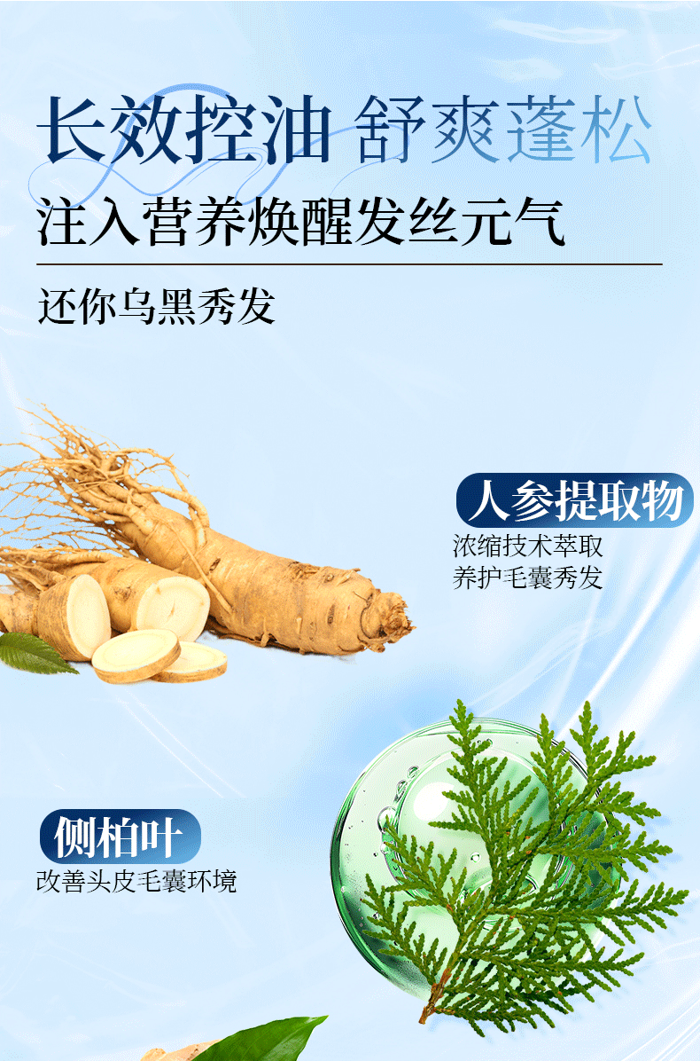 植萃精華組合:葛根提取物、知母根提取物、人參葉提取物、姜根提取物、紅車軸草葉提取物、艾葉提取物,多種植萃成分協(xié)同作用,既能輔助控油,又能滋養(yǎng)發(fā)根,增強發(fā)絲支撐力,同時還能舒緩頭皮,改善頭皮瘙癢,長期使用能讓發(fā)絲變得更加強韌。