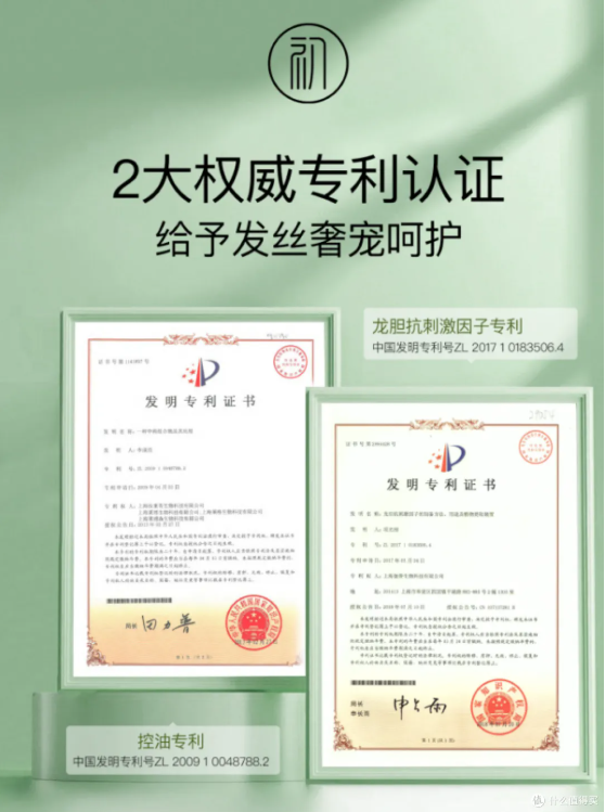 第一項專利(專利號:ZL201710183506.4),對應成分是龍膽根提取物、丁二醇、水。龍膽根提取物能舒緩頭皮,調(diào)節(jié)頭皮代謝,減少油脂分泌,增強頭皮屏障,避免清潔后出現(xiàn)“報復性出油”,為長效控油打下基礎,同時還能緩解頭皮敏感、泛紅,讓頭皮保持穩(wěn)定狀態(tài)。