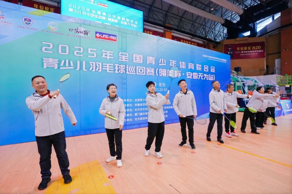 11月22日,2025全國(guó)青少年體育聯(lián)合會(huì)青少兒羽毛球巡回賽(翎美杯·安徽無(wú)為站)在無(wú)為全民健身綜合館正式開(kāi)賽。來(lái)自全國(guó)近500名選手參加比賽。此次巡回賽參賽年齡為8周歲至18周歲;另設(shè)大眾組別,供廣大羽毛球愛(ài)好者參與。