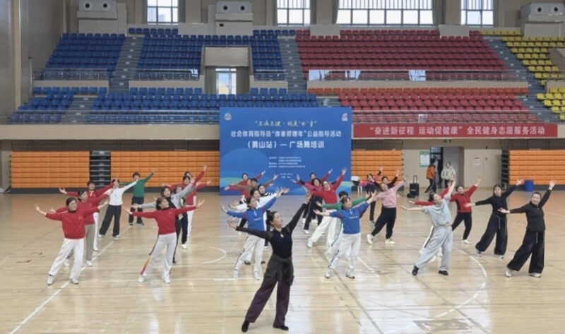 近日,安徽省社會(huì)體育指導(dǎo)員“體重管理年”公益指導(dǎo)活動(dòng)(黃山站)在休寧縣體育館舉行,市社會(huì)體育指導(dǎo)員協(xié)會(huì)組織專業(yè)老師開展廣場(chǎng)舞公益教學(xué)。
