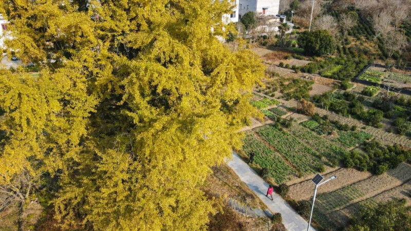 12月4日,祁門縣渚口鄉(xiāng)渚口村千年銀杏樹(shù)迎來(lái)最佳觀賞期,金黃的葉片掛滿枝頭,讓古村落更添魅力。