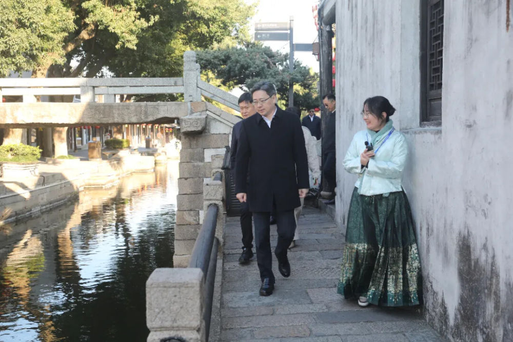在西塘古鎮(zhèn),考察組實(shí)地察看明清古建筑保護(hù)、非遺傳承及文旅融合發(fā)展成果。金曉明強(qiáng)調(diào),青浦與嘉善同屬江南水鄉(xiāng),文化同源、生態(tài)相依,要以長(zhǎng)三角示范區(qū)建設(shè)為契機(jī),學(xué)習(xí)西塘在文化遺產(chǎn)保護(hù)與旅游開(kāi)發(fā)平衡上的成功實(shí)踐,深化兩地文旅資源互聯(lián)互通,共同打造長(zhǎng)三角文旅融合新高地。青浦要立足長(zhǎng)三角示范區(qū)核心區(qū)定位,主動(dòng)聯(lián)動(dòng)吳江、嘉善,持續(xù)強(qiáng)化戰(zhàn)略協(xié)同、政策協(xié)同、工作協(xié)同,在科創(chuàng)協(xié)同、文旅共興、生態(tài)共治等領(lǐng)域探索更多跨區(qū)域合作新路徑,以三地一體化發(fā)展的實(shí)際成效,為長(zhǎng)三角生態(tài)綠色一體化發(fā)展示范區(qū)建設(shè)注入更強(qiáng)動(dòng)力,為全國(guó)區(qū)域協(xié)調(diào)發(fā)展提供可復(fù)制、可推廣的經(jīng)驗(yàn)。