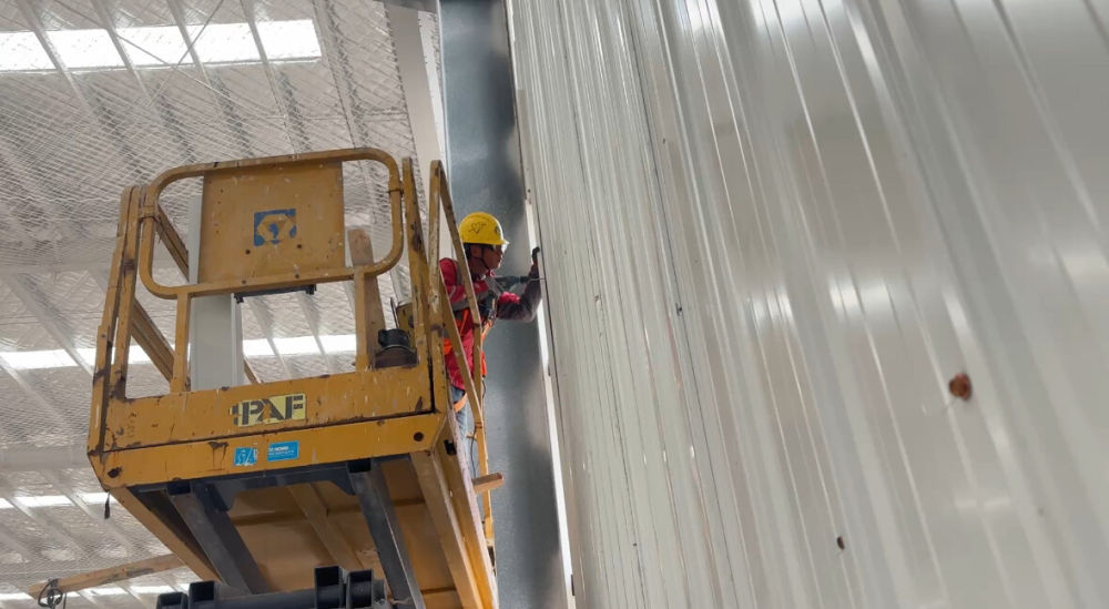 在項(xiàng)目施工現(xiàn)場(chǎng),鋼結(jié)構(gòu)廠房屋面及墻面彩鋼板已鋪設(shè)完成;室內(nèi)機(jī)電管線安裝與門窗、欄桿安裝施工同步開(kāi)展,室外道路及景觀施工工作全面鋪開(kāi)?!拔覀冎贫藝?yán)密的階段計(jì)劃,通過(guò)優(yōu)化施工流程、協(xié)調(diào)各方資源,確保每天200余名工人滿負(fù)荷作業(yè),全力保障裝修進(jìn)度按節(jié)點(diǎn)推進(jìn)?!表?xiàng)目相關(guān)負(fù)責(zé)人介紹,預(yù)計(jì)2026年初可實(shí)現(xiàn)部分樓棟提前交付。