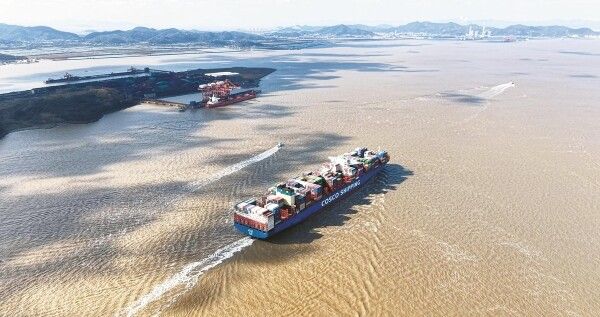“中海環(huán)球”輪正在駛過條帚門航道。(寧波舟山港集團供圖)