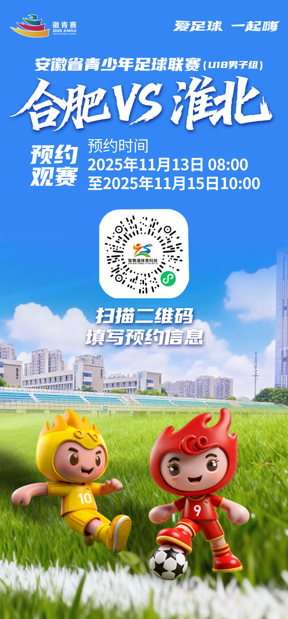 這個(gè)初冬周末的午后,綠茵場(chǎng)上將再次點(diǎn)燃青春的戰(zhàn)火。讓我們齊聚合肥體育中心,用熱烈的吶喊聲,為這群為夢(mèng)想拼搏的合肥足球小子們加油鼓勁,見(jiàn)證他們向著勝利的目標(biāo)全力沖刺?。ㄚw杰)