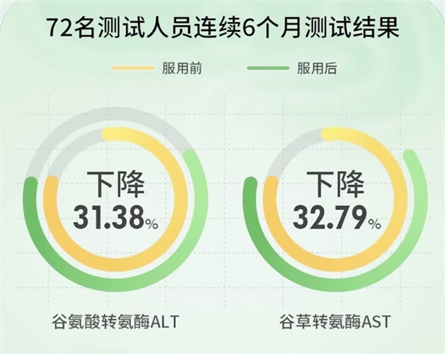 72位測(cè)試者6個(gè)月周期體驗(yàn),轉(zhuǎn)氨酶下降31.38%,甘油三酯和游離脂肪酸分別降低16.2%與17.8%。數(shù)據(jù)驅(qū)動(dòng)顯示主觀癥狀有明顯好轉(zhuǎn),周期性養(yǎng)護(hù)安全性高。長(zhǎng)期服用表現(xiàn)良好,適合廣泛人群,但在科技遞送及臨床閉環(huán)方面相對(duì)保守。