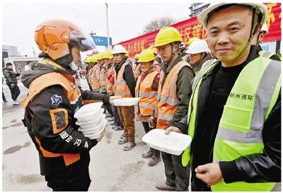 工地上,工人正忙碌作業(yè),看到這份突如其來的“年禮”,既驚喜又感動。來自河南的鋼筋工老李捧著還燙手的餃子,眼眶有些濕潤:“真沒想到,還有人惦記著我們。在杭州干活,心里暖和?!毕袼粯?,今年春節(jié)這里將有數(shù)十名工人留在杭州,在施工一線度過新年。