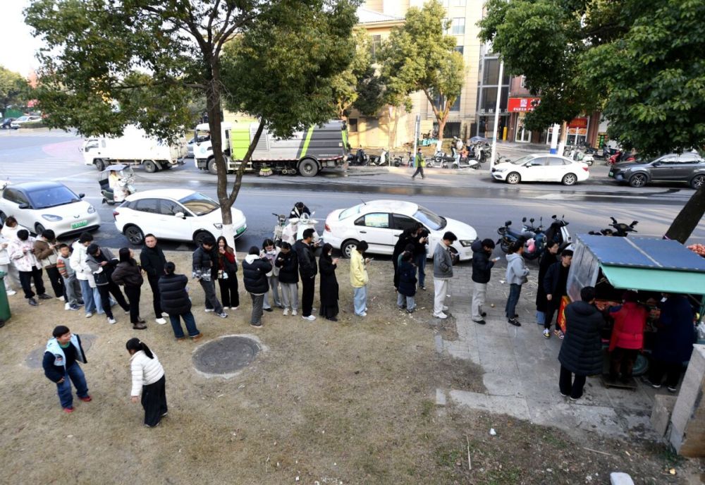 “在網(wǎng)上看到爺爺奶奶的視頻,覺得特別親切,就過來嘗嘗?!背埠W(xué)院的學(xué)生小肖一邊排隊一邊記錄。每天下午3點(diǎn)半左右,老兩口剛支好攤,已有顧客在等候。隊伍中有學(xué)生、附近居民,也有從合肥、馬鞍山等地特意趕來的食客。