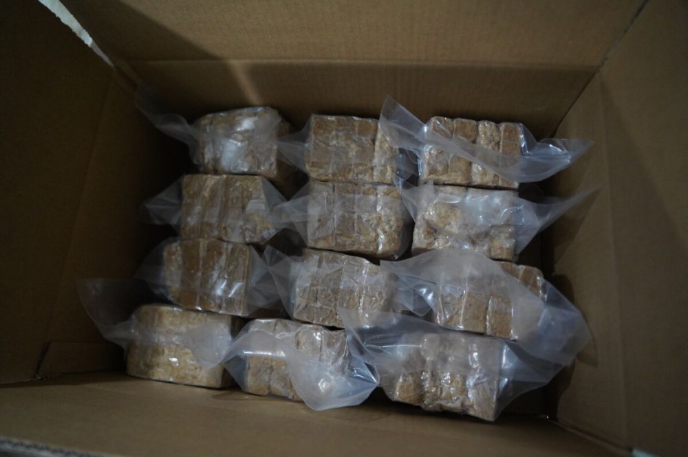 在反復(fù)的捶打下,糖與花生緊密交融,逐漸延展成平整厚實的方塊。隨后,方塊被送上切割機,隨著刀起刀落,變成大小整齊的長條,再迅速被切分成一塊塊小巧方正的花生酥。熱乎乎的花生酥被工人平鋪在臺面,風(fēng)扇徐徐吹過,原本略帶韌性的糖塊漸漸變得酥脆,隨后裝袋封口,打包發(fā)往全國各地。