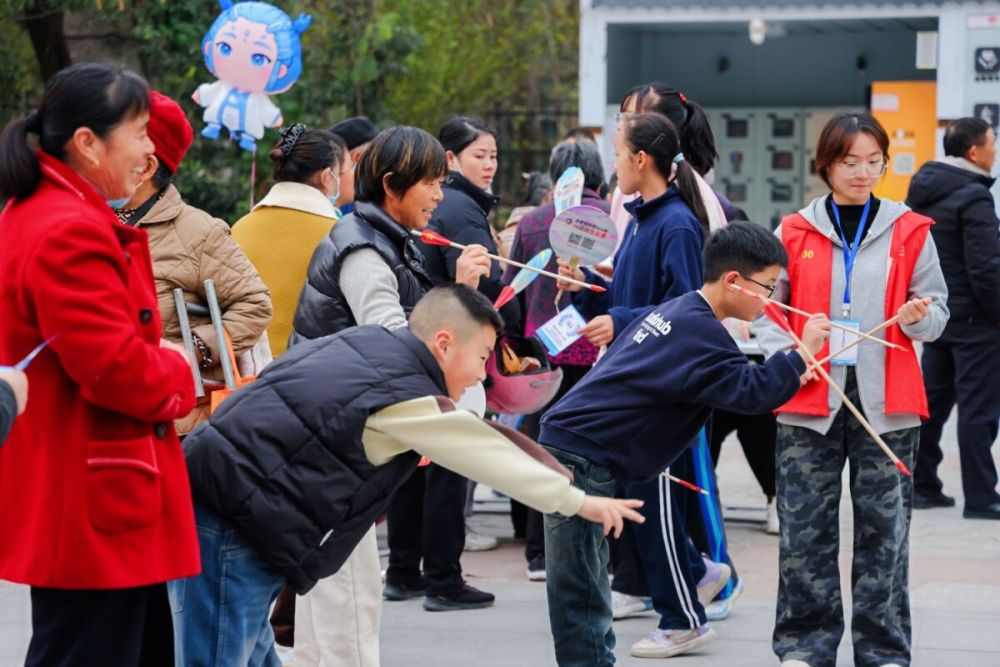 運(yùn)動(dòng)區(qū)里,吶喊與歡笑齊飛。“趣味投壺”區(qū)域,一位精神矍鑠的老大爺屏息凝神,竹箭應(yīng)聲入壺,周圍立刻爆發(fā)出陣陣喝彩;“簡(jiǎn)易保齡球”道前,孩子們瞄準(zhǔn)目標(biāo)奮力一擲,無論全中與否,都能收獲滿滿的鼓勵(lì)與歡樂。手作區(qū)中,巧思與溫情共融。?運(yùn)動(dòng)過后,許多居民轉(zhuǎn)而沉浸在手作的靜謐美好中。古風(fēng)漆扇制作臺(tái)前,大家在老師的指導(dǎo)下,精心調(diào)配大漆,勾勒出獨(dú)一無二的流彩紋樣;一旁的暖心書簽DIY區(qū),孩子們正認(rèn)真地用彩筆寫下勵(lì)志名言或繪制可愛圖案?!斑@個(gè)書簽我要送給媽媽!”一位名叫樂樂的小女孩驕傲地展示著自己的作品,“上面畫了我們家和一顆愛心!”