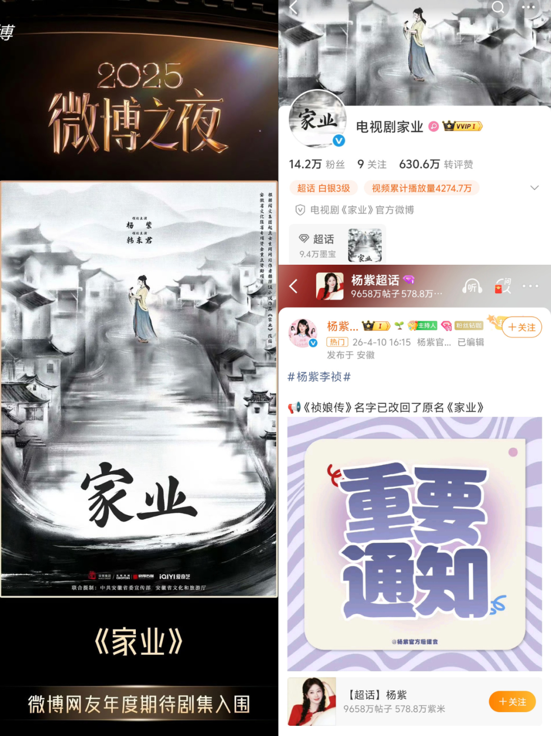 最近《家業(yè)》改名風(fēng)波挺熱鬧——官博從《家業(yè)》改成《禎娘傳》,現(xiàn)在又改《家業(yè)》了。