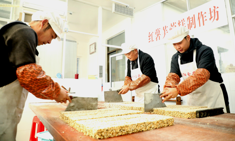 1月31日,歙縣富堨鎮(zhèn)一作坊內(nèi),工人們正在趕制春節(jié)糕點“煮谷糖”。作為徽州地區(qū)的傳統(tǒng)美食,“煮谷糖”是農(nóng)家春節(jié)待客的必備糕點之一。